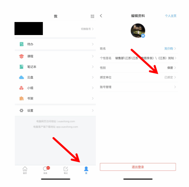 ●右下角点击“我”,点击头像 ➡️绑定单位 ➡ 添加单位 ➡输入江苏工程职业技术学院 ➡️绑定学工号