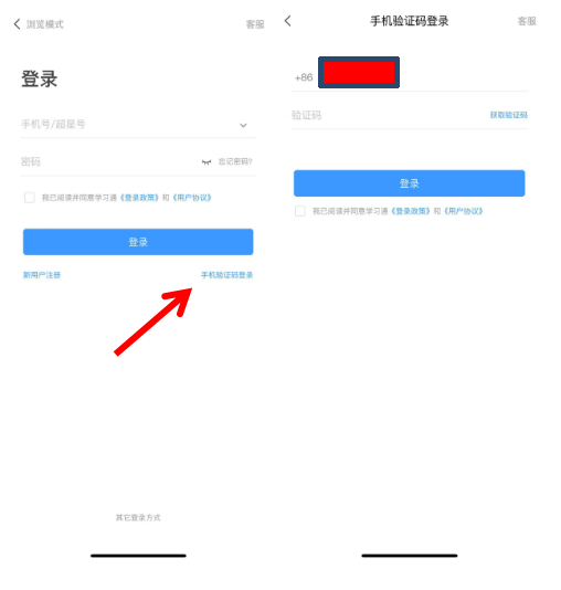 ●打开学习通,在登录页面先点击“手机号快捷登录”,进入注册页面,填写“手机号”,获取验证码并填写,点击“登录”。